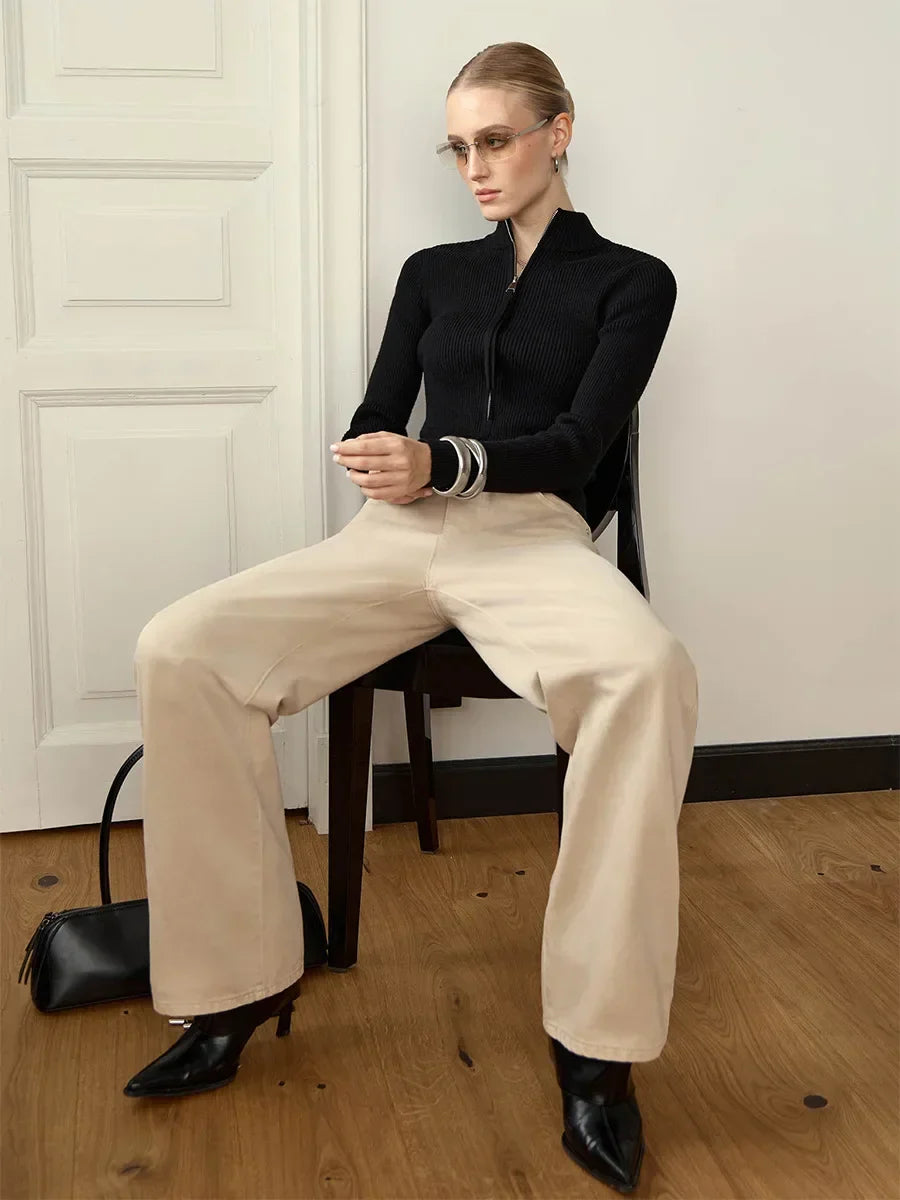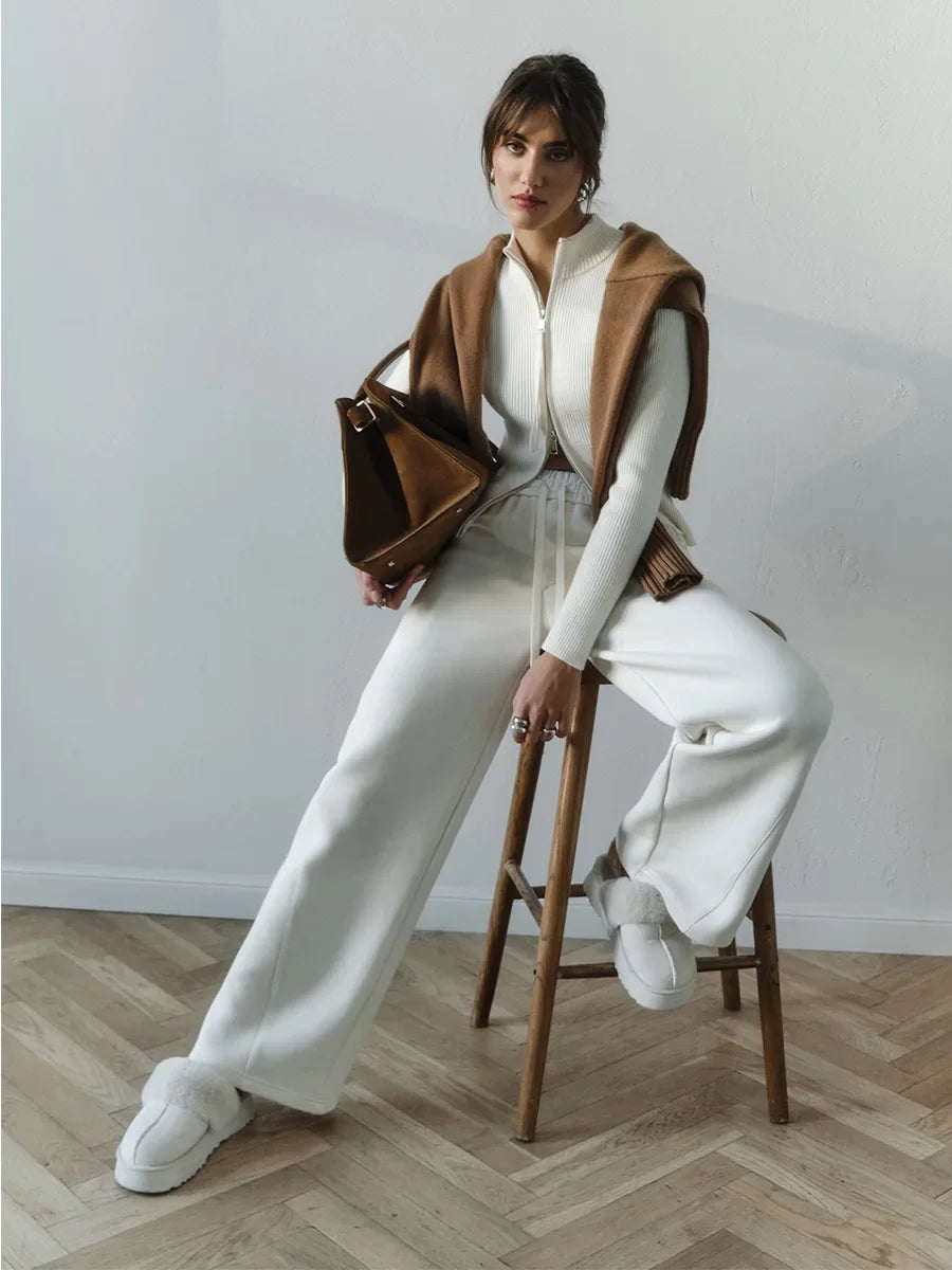 Le cardigan Livia épouse naturellement les formes avec son col montant sophistiqué et sa double fermeture zip moderne. Raffiné et polyvalent, il s'adapte à toutes les occasions, de la ville aux moments plus habillés, en apportant cette touche d'élégance discrète qui fait la différence.